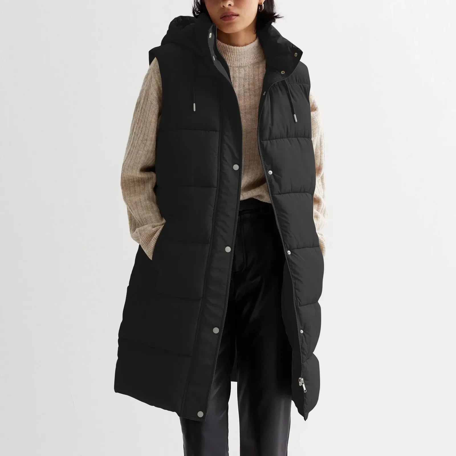 A streamlined fit defines this sleeveless duck-down parka, offering lightweight warmth and versatile layering options.