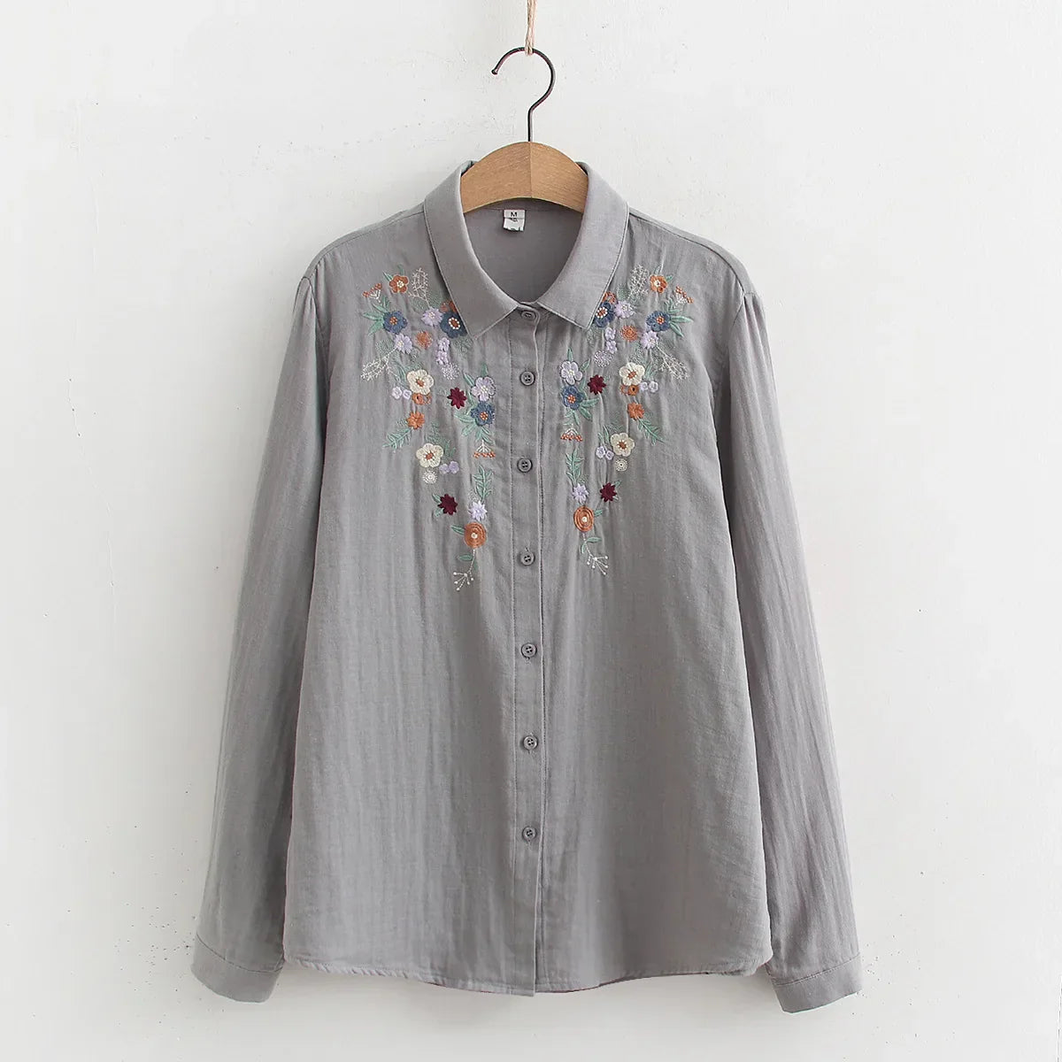 Adina™ | Embroidered Floral Button-Up Shirt 🌸👚